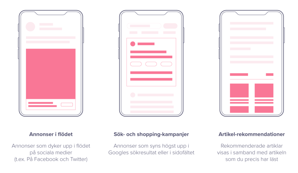 Displayannonser har också högre räckvidd på grund av den stora mängden annonsplatser och visningsutrymme.