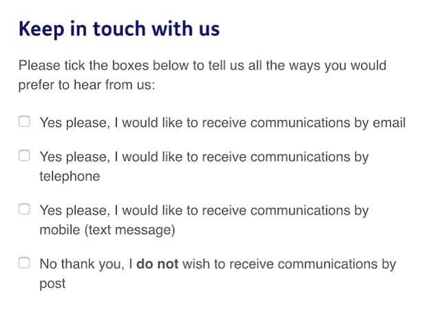 4. Have a clear opt-in choice within the form, so the user has to actively allow their data to be collected. Have these choices laid out in granular options so the person knows exactly what they are signing up for.