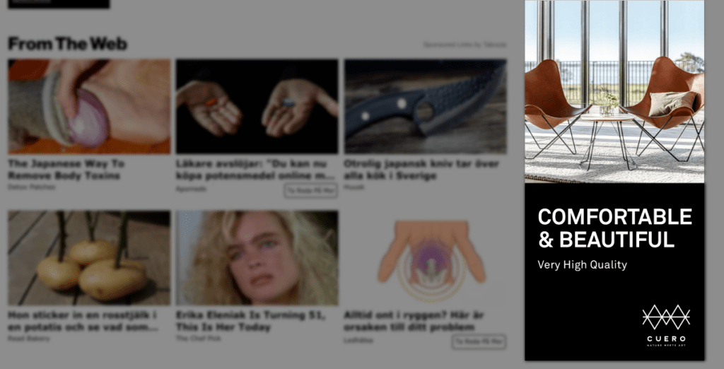This includes advertising content on premium websites (such as BBC, The New York Times, or The Guardian) with a clear brand story to tell. Many brands already use content in other channels such as SEO. This content is often also used in native ads.