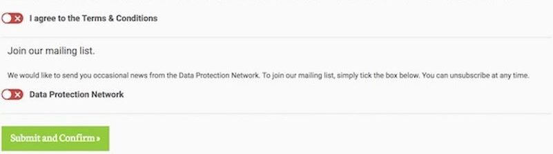 2. After the user has filled in their details, use simple and honest language about your data collection activity. Similar to formulating your cookie consent pop-up, ensure the user knows which parties will collect their data and clarify exactly how the data will be used.